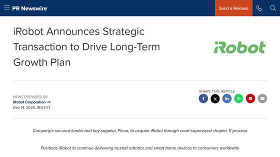 ついにルンバのiRobotが破産申請、中国の主要サプライヤーに経営権移譲の再編支援契約を締結へ - GIGAZINE