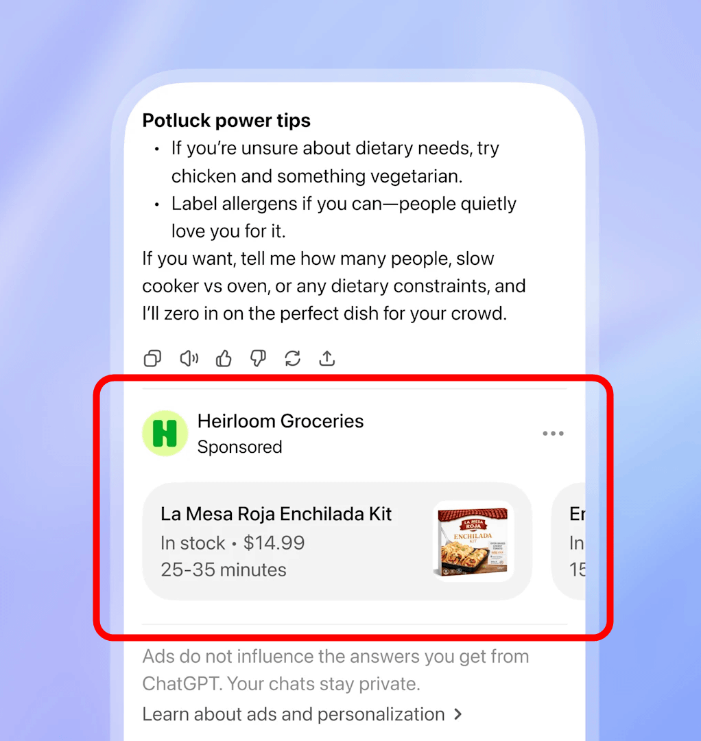 ChatGPT での広告のテスト | OpenAI