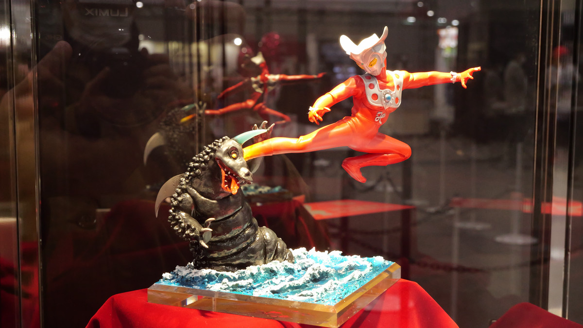 会場入口には円谷プロのヒーローたちの銅像が設置されています。これが初代ウルトラマンです。