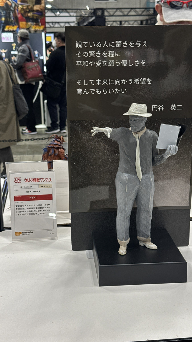 「特撮の神様」と呼ばれ、ウルトラマンやゴジラなど数々の特撮作品に携わった円谷プロダクション初代社長・円谷英二のシチュー。生産されましたデミーGKこちらはMr. 背景に刻まれているのは円谷さんの言葉です。
