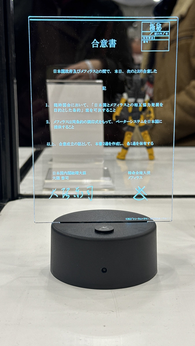『シン・ウルトラマン』にてメフィラスが渡した日本政府との協定書。付属のLEDライトにアクリル板を差し込むことで再現可能。