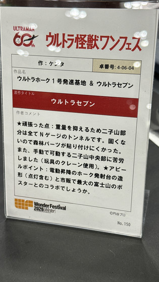 会場の一角にある広大な空間は、ケンタの「ウルトラホーク1号送信基地&ウルトラセブン」によって封鎖された。ウルトラホーク1号が山から飛び出す巨大ジオラマ。