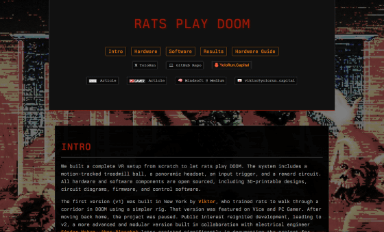 ラットにDOOMをプレイさせるVR実験装置のハードウェア構成とソフトウェアが以下のGitHubリポジトリで公開されています。世界中の研究者がこのシステムを応用し、さまざまな動物実験に活用することができます。