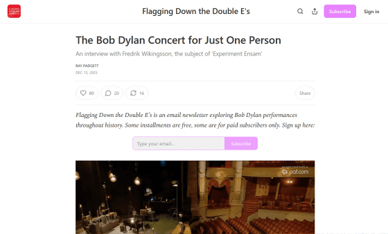 https://www.flaggingdown.com/p/the-bob-dylan-concert-for-just-one
