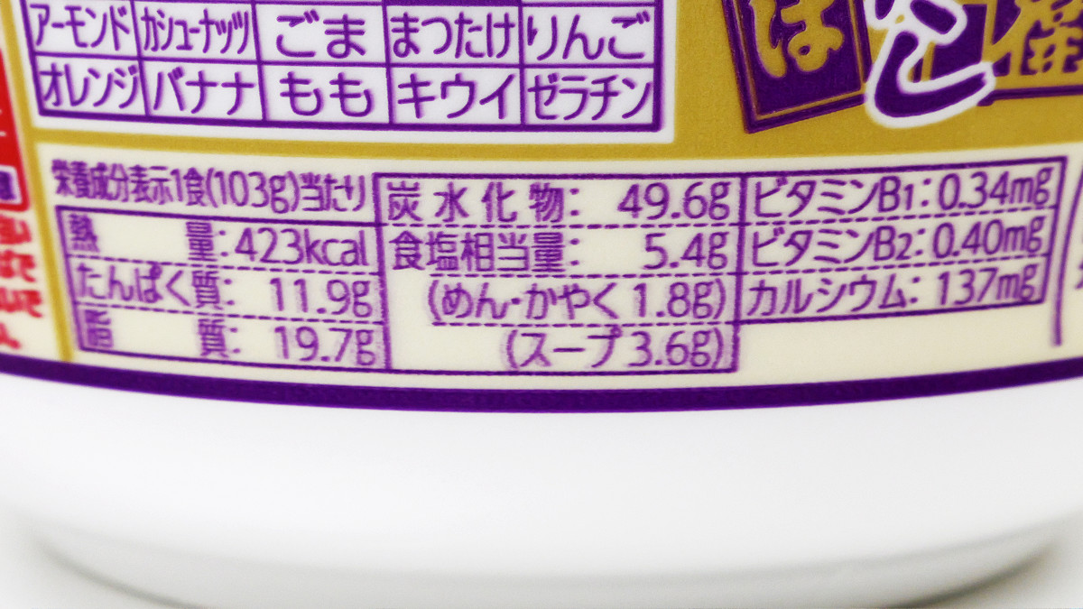 カロリーは1食あたり423kcal、食塩相当量は5.4g。