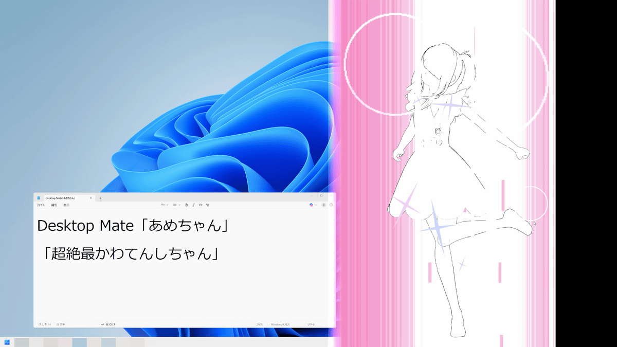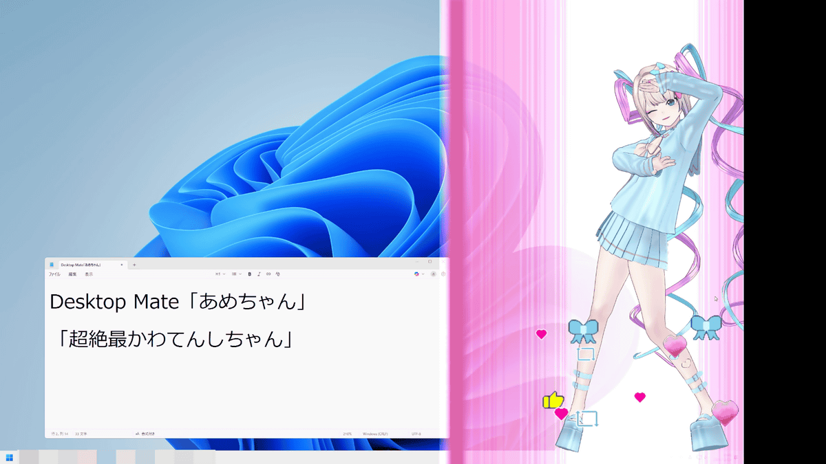 愛情と承認欲求にまみれた女子「あめちゃん」と最強インターネットエンジェル「超絶最かわてんしちゃん」を画面上に登場させるDesktop MateのDLCを使ってみた、2つ合わせると変身シーンも – GIGAZINE