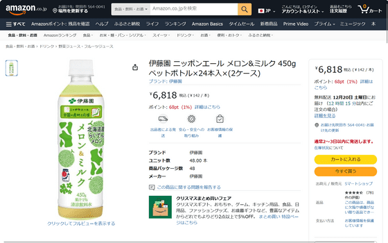 Amazon.co.jpでは2ケース24本入りを税込6,818円(1本あたり約142円)で販売。
