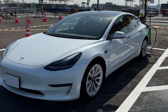私は私のテスラモデル3で大阪とカンサイ博覧会、岡山、丘陵への...