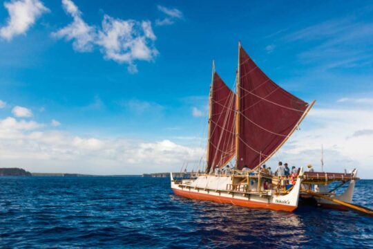 2025年6月3日、古代の航海カヌー「ホクレア号」がハワイか...