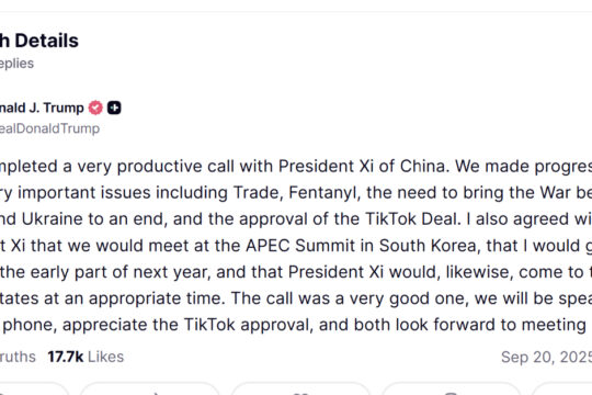中国の習近平国家大統領との電話での会話の後、米国大統領トラン...