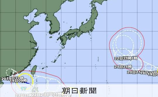 トリプル台風発生 日本の南の熱帯低気圧→17号、18号、19...