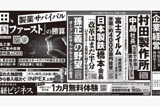 [2025年9月13日]日経ビジネス最新号 新聞広告の掲載記...
