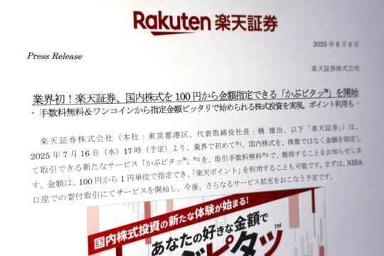 楽天証券は6月6日、投資金額を指定して国内株式を1円単位で購...