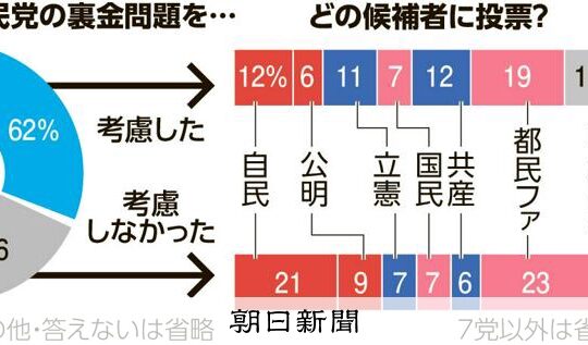 自民裏金問題 「考慮」62% 「考慮せず」36% 都議選出口...