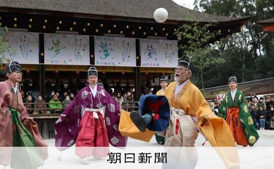 京都・下鴨神社で新春の「蹴鞠初め」 平安時代の球技、かけ声響...
