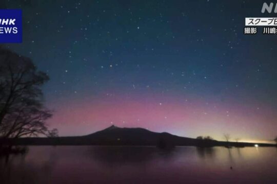 12日夜、北海道七飯町にある大沼国定公園で、低い緯度で発生す...