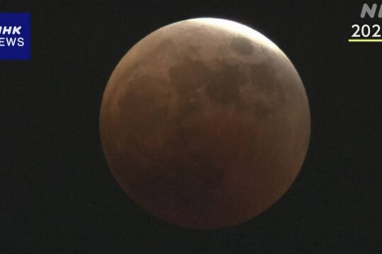 満月が地球の影に覆われて赤黒く輝く「皆既月食」が8日午前2時...