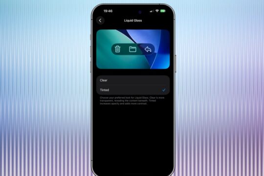 液体ガラス設定では、デフォルトの透明な外観か、ロック画面上の...