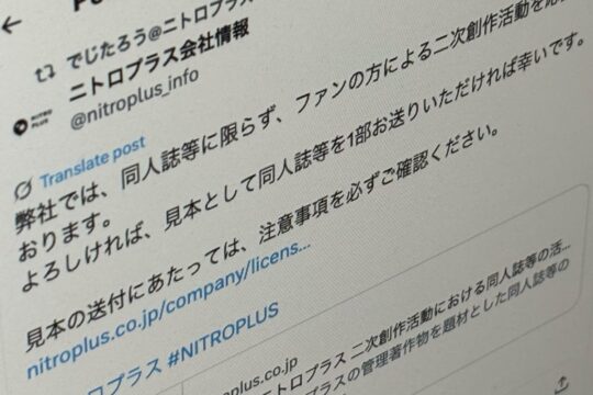 18日、Nitroplusは、Dujinshiなどのファンア...