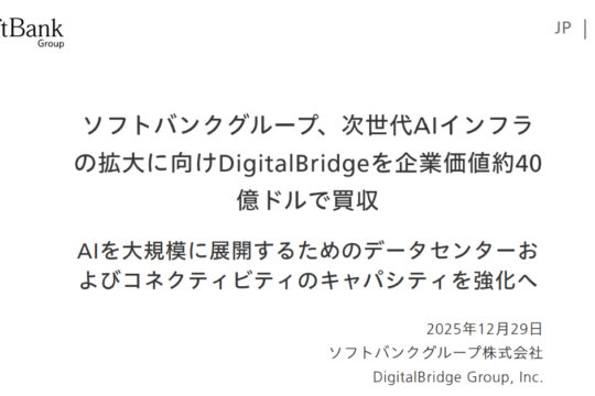 ソフトバンクグループは米国の資産管理会社デジタルブリッジ・グ...