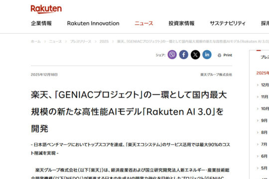楽天は、日本語に特化したLLM「Rakuten AI 3.0...