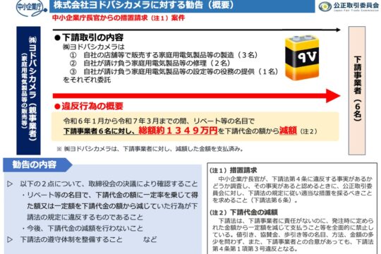 8日、フェアトレード委員会はヨドバシカメラに勧告を発行し、下...