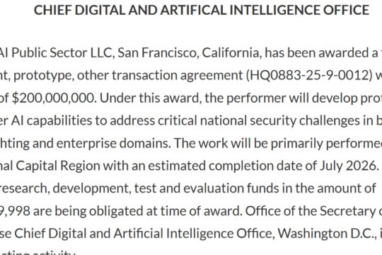 米国国防総省は、Openaiと2億ドルの契約に署名したことを...