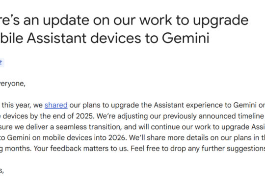 • Android端末での「Googleアシスタント」から「Gemini」への完全移行、2026年にずれ込む