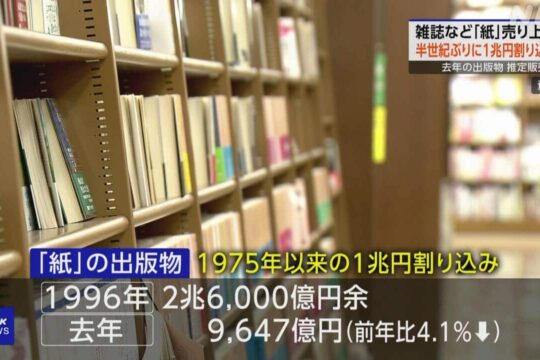 去年1年間の出版物の推定販売額は4年連続...