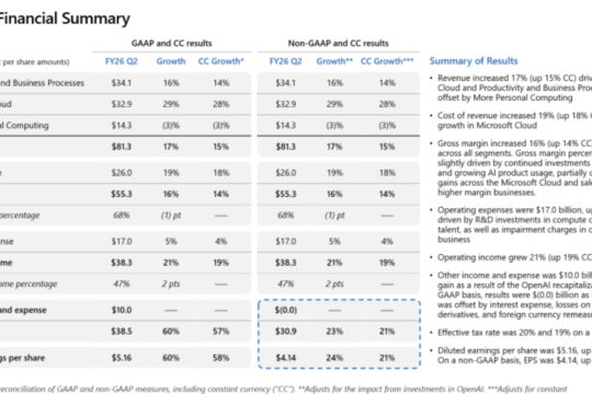 • Microsoft、OpenAI投資評価益で純利益60%増 クラウド売上高が初の500億ドル突破