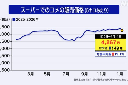 全国のスーパーで1月11日までの1週間に販売されたコメの平均...