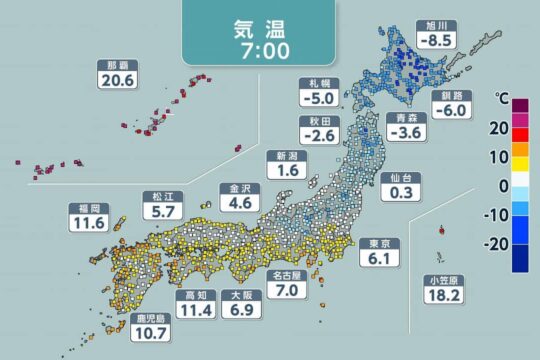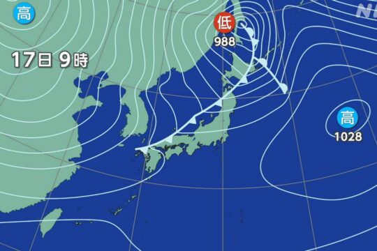 冬型の気圧配置が強まる影響で、北日本では雪と風が強まっていて...