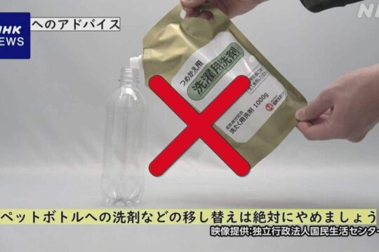 飲み物が入っていた空のペットボトルに、洗剤や消毒液を移し替え...