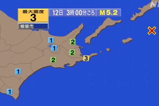 12日午前3時0分ごろ地震がありました。この地震による津波の...