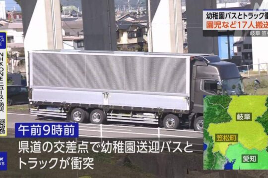 Tag: 幼稚園児を乗せた送迎バスとトラック衝突