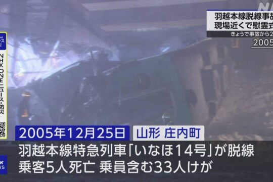山形県庄内町でJR羽越本線の特急列車が脱線し、5人が死亡した...