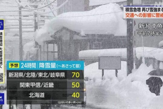強い冬型の気圧配置の影響で日本海側を中心に雪が降り続き、平年...