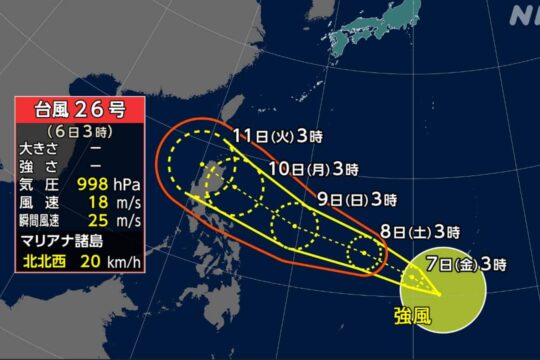 6日午前、日本のはるか南で台風26号が発生しました。気象庁は...