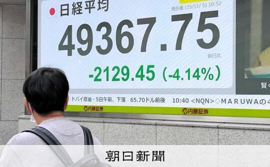 Tag: 日経平均が一時5万円割れ1900円超下落AI銘柄の過熱感警戒