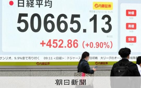 Tag: 日経平均一時1000円超上がり5万1200円台AI関連が牽引