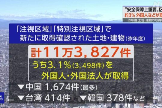 安全保障上重要と位置づける区域をめぐり、政府は昨年度1年間の...