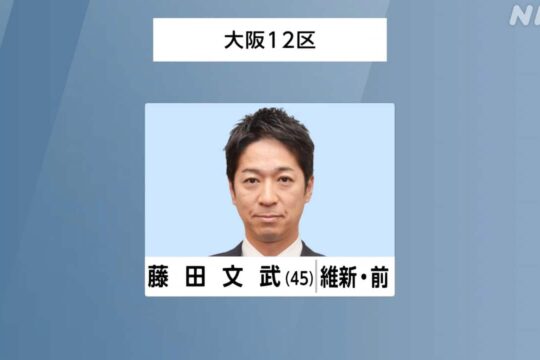大阪12区は日本維新の会の前議員、藤田文武氏の4回目の当選が...