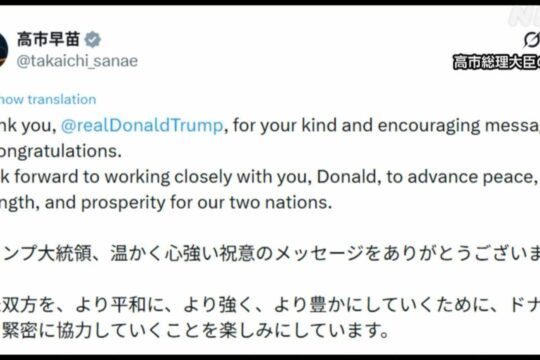 Tag: 衆院選勝利で各国首脳からの祝意に相次ぎ返礼の投稿