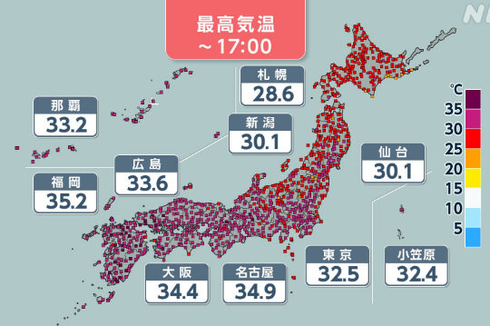 台風一過の6日、九州から東海にかけての各地で35度以上の猛烈...