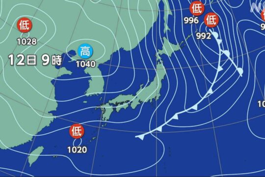 冬型の気圧配置が強まる影響で、北日本を中心に12日にかけて大...