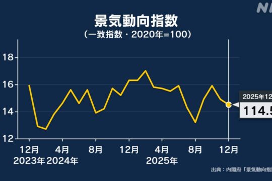 内閣府が発表した去年12月の景気動向指数は、景気の現状を示す...