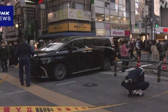 27日午後、大阪・ミナミのなんば駅付近で乗用車が歩道に乗り上...