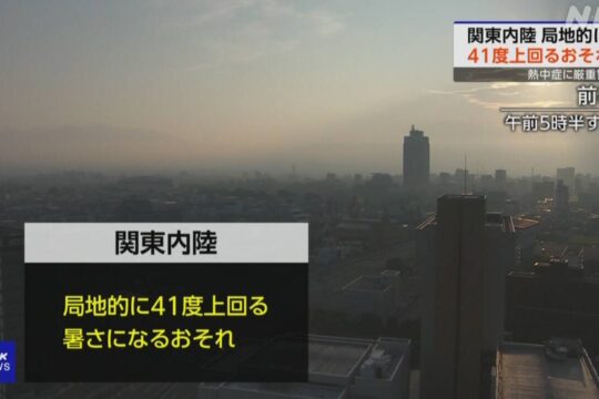 連日、危険な暑さとなる中、5日も関東や近畿などで危険な暑さが...