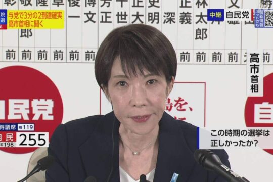 高市総理大臣が、午後10時半ごろ、NHKの開票速報番組で、今...