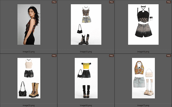 テキストの指示に従ってカットが切り替わります。カットが変わっても、服装や全体の色合いは保たれます。